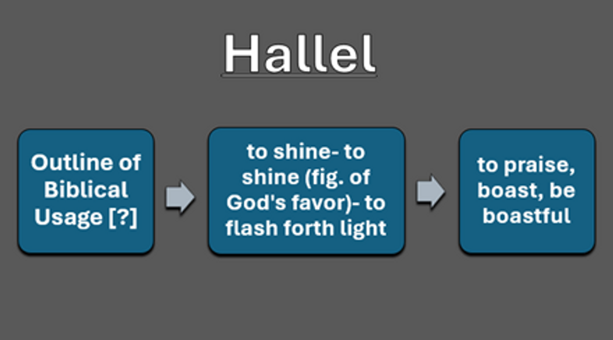 Halel is the Hebrew word we really want to dig about tonight. Not to say the other words for praise aren’t important, but Halel sort of houses all those words once you break it down and see what praise is compacted with.